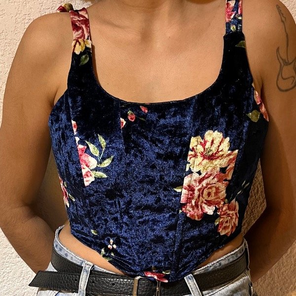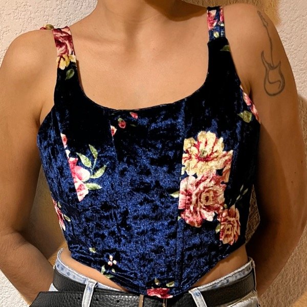 Corset con ballena y cinta regulable en talle y hombros atados.