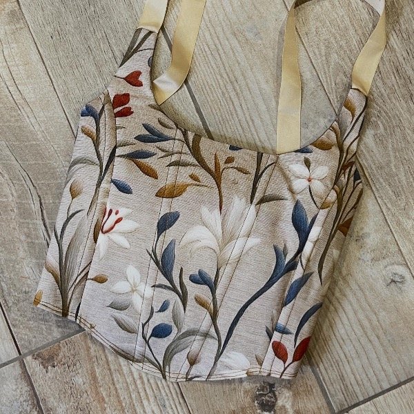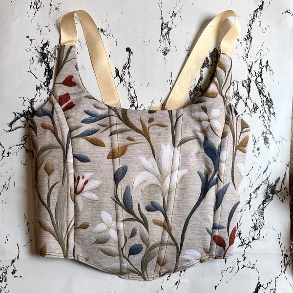 Corset con ballena y cinta regulable en talle y hombros atados.